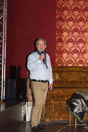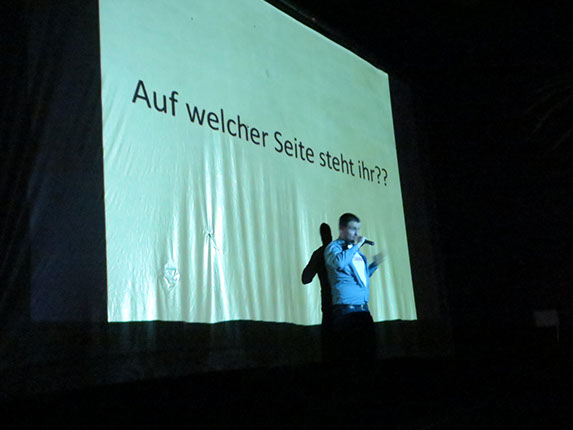Und – vulgär gesagt: Uns stehen die Mäuler offen! Nicht nur, dass sich Hauke Schmidt visuell auf ein einzelnes Zitat beschränkt. Ab der Mitte des Vortrags wirft er seine Notizen einfach weg und spricht aus dem Stegreif! Ein „frei-Schnauze-Vortrag“ über Politik, Gesellschaft, Moralisten und Gut-Menschen.